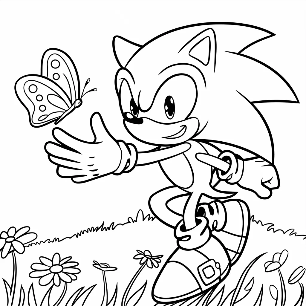 Gambar Sonic yang membuat penasaran dengan kupu-kupu, menampilkan sisi lembutnya.