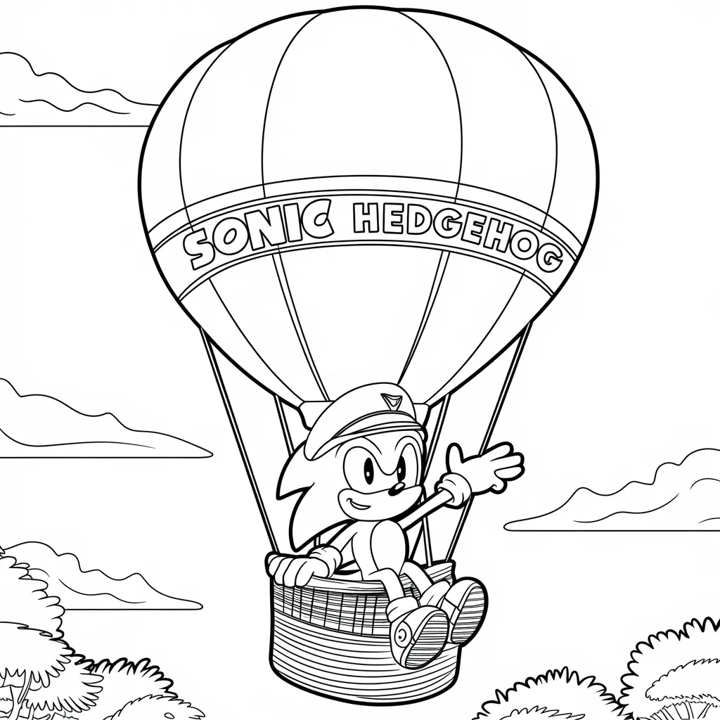 Ilustrasi Sonic memegang balon udara warna-warni, menambah keceriaan dalam mewarnai.