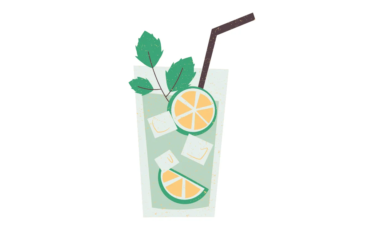 Tampilan gambar kartun minuman es lemon lengkap dengan daun mint, es batu kecil bentuk persegi, dan potongan buah lemon tampak segar memberikan kesan yang menyegarkan dan menggugah selera. Warna kuning cerah dari minuman es lemon memberikan kesan segar dan ceria. Kehadiran daun mint sebagai hiasan memberikan sentuhan hijau yang menambah kesegaran dan aroma yang khas. Potongan buah lemon yang terlihat segar menambahkan elemen visual yang menarik dan menggugah selera. Es batu kecil bentuk persegi memberikan kesan modern dan menyatu dengan tampilan keseluruhan minuman. Kombinasi dari semua elemen ini menciptakan gambar yang menarik dan mengundang minat untuk menikmati minuman es lemon yang segar dan menyegarkan.