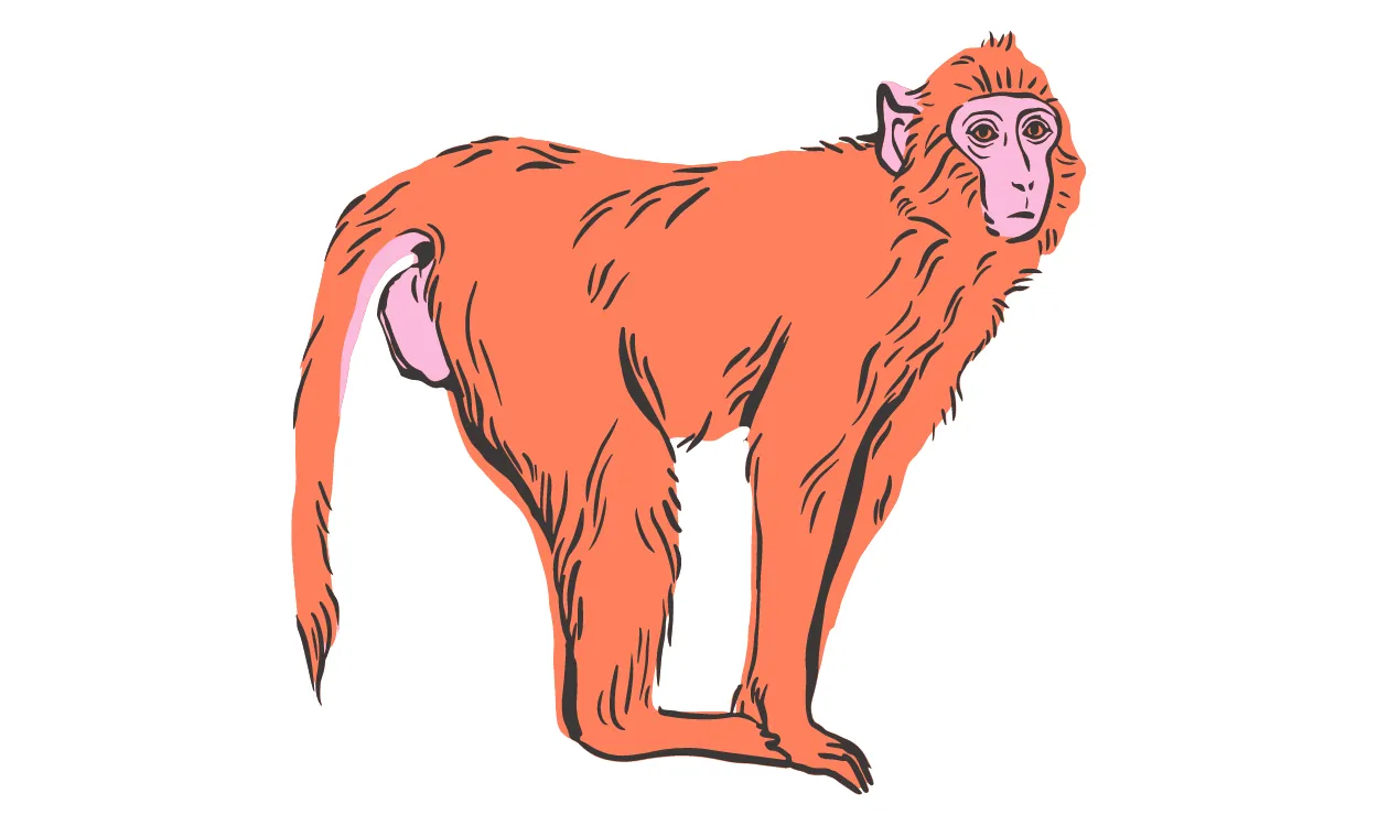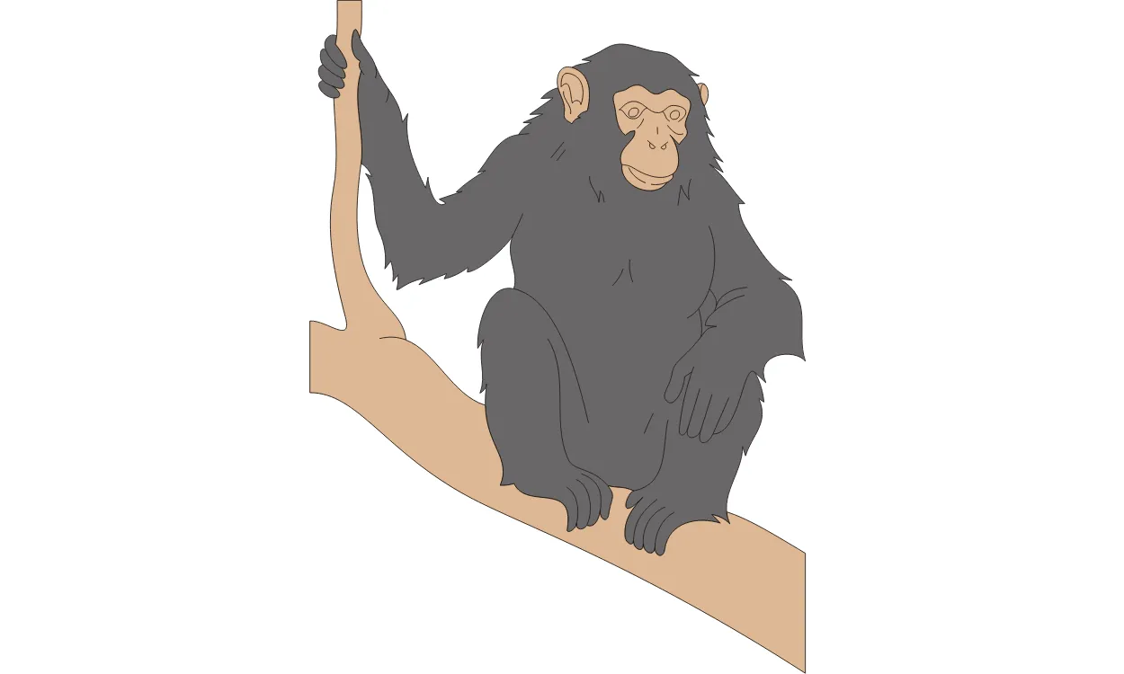 Gambar kartun monyet dewasa yang tampak nyata memberikan kesan realisme. Detil yang lebih rinci pada wajah, bulu, dan fitur tubuh monyet menciptakan ilusi bahwa gambar tersebut seperti foto nyata.