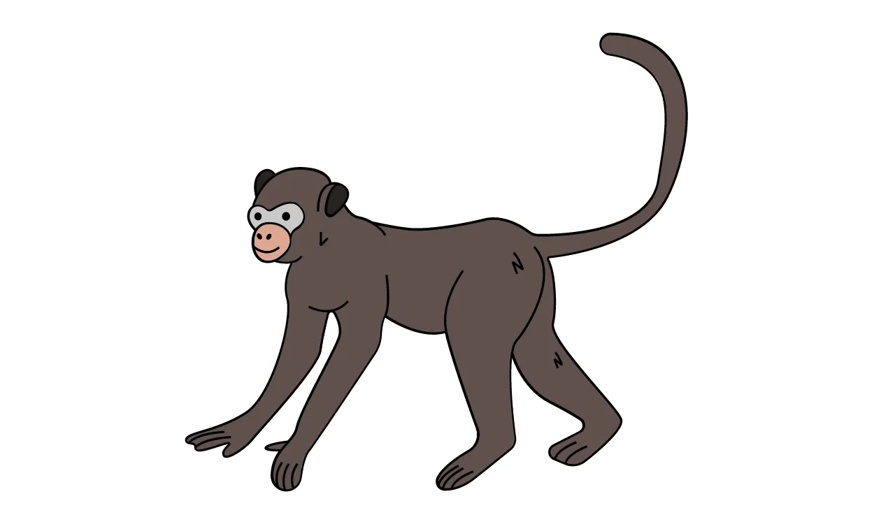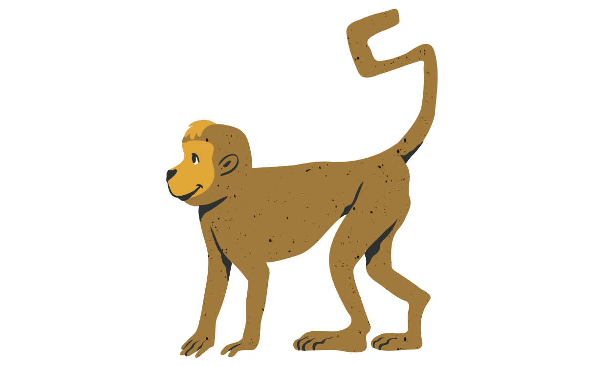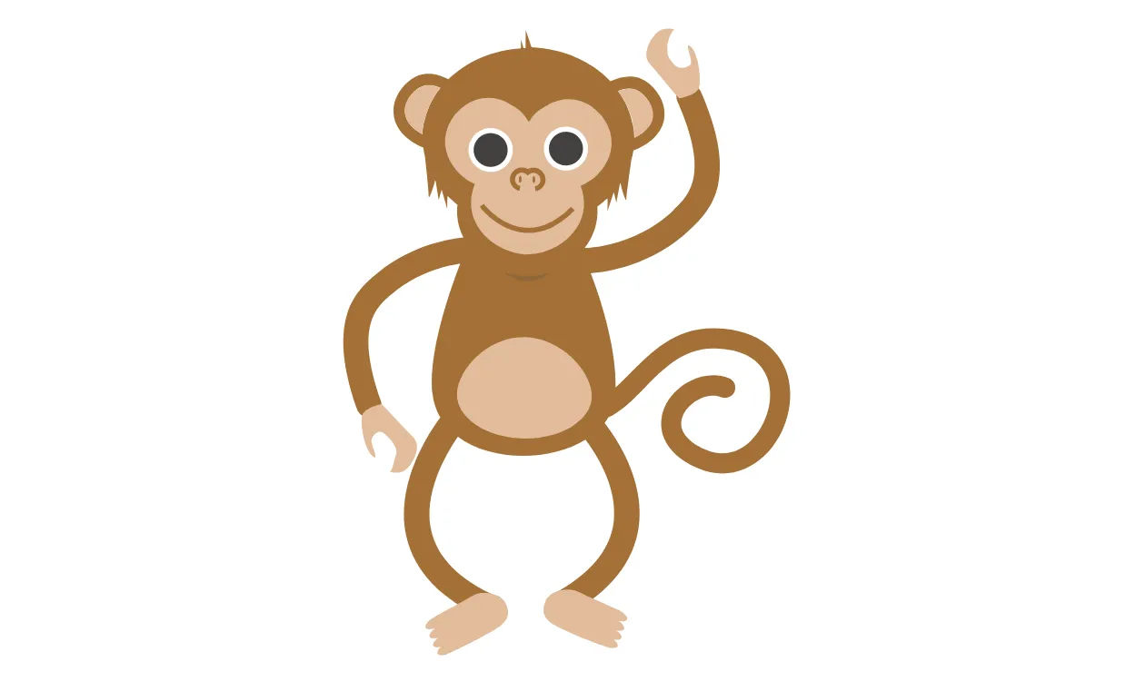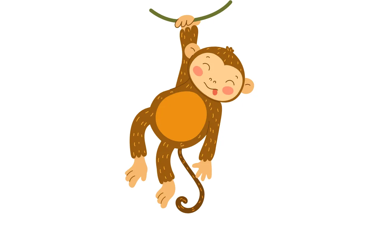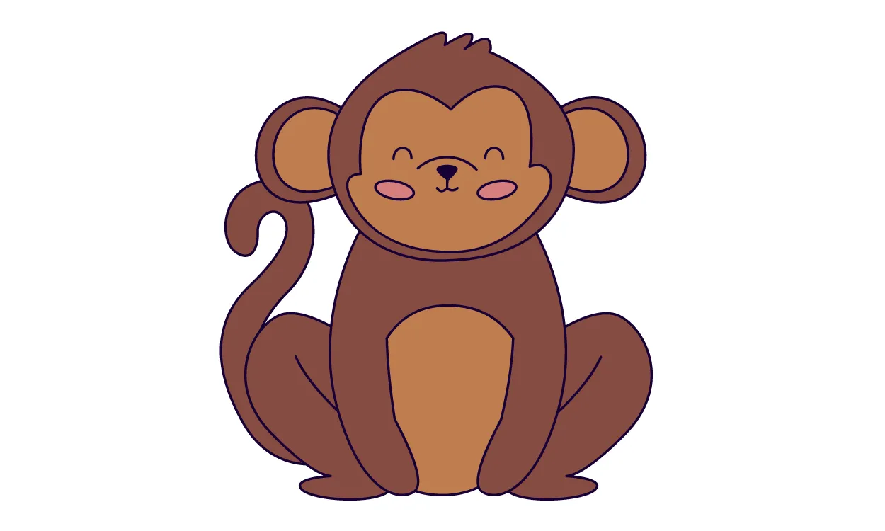 Warna cokelat pada gambar kartun monyet memberikan kesan kealaman dan kesederhanaan. Warna ini sering dikaitkan dengan alam dan tanah, sehingga memberikan kesan bahwa monyet tersebut adalah karakter yang hidup dalam lingkungan alami dan sederhana.
