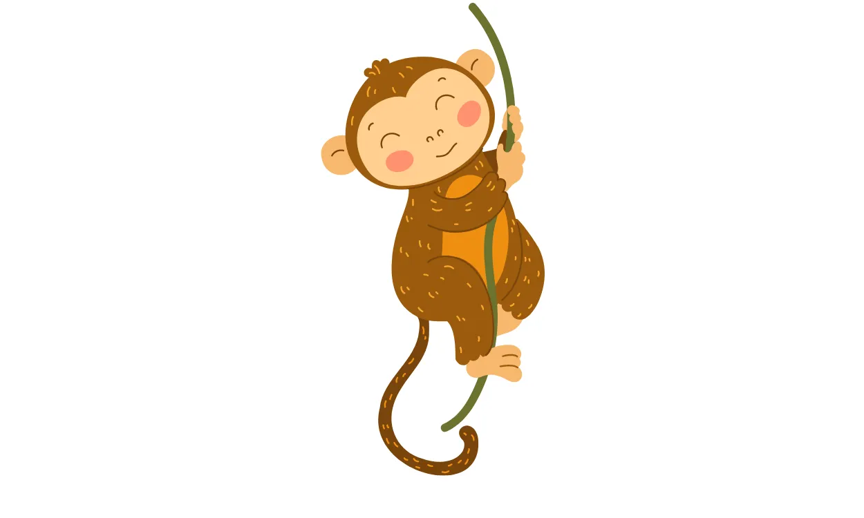 Gambar kartun monyet cokelat dalam pose rebahan sambil melambaikan tangannya menciptakan kesan kesenangan dan kegembiraan. Pose ini menggambarkan karakter monyet yang santai dan bahagia, memberikan kesan bahwa ia sedang menikmati momen yang menyenangkan.