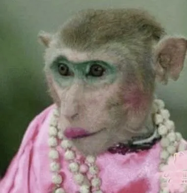 Kesan menggemaskan dan menghibur dari gambar ini datang dari tingkah polos dan kocaknya monyet yang mencoba meniru tampilan manusia dengan menggunakan make up dan gaun. Hal ini akan membuat gambar tersebut menjadi menarik dan mengundang perhatian banyak orang.