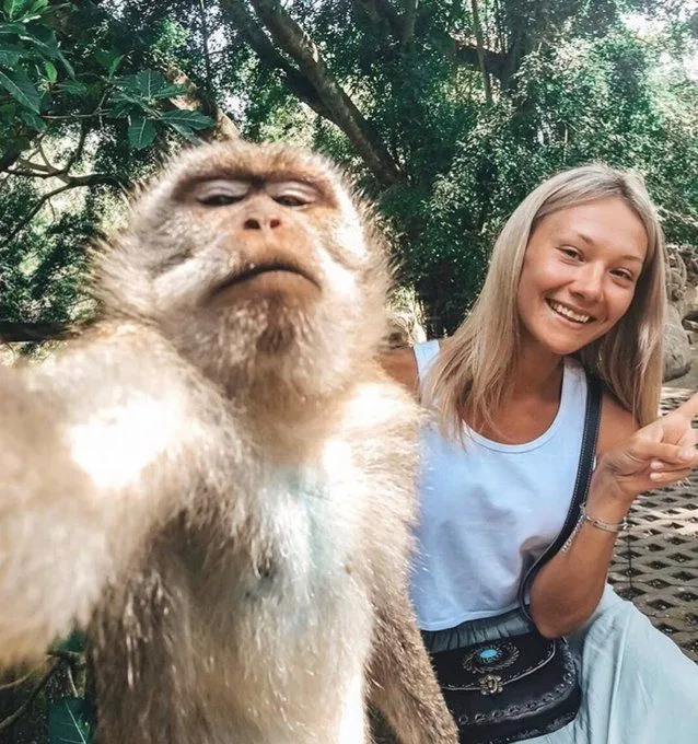 Ekspresi monyet yang polos dan ingin ikut “bermain” dengan turis tersebut akan mengundang gelak tawa dan senyuman dari siapa saja yang melihatnya. Kesan menggemaskan dari gambar ini datang dari interaksi yang tidak biasa antara manusia dan hewan. Monyet yang tampak ingin ikut berpose seperti manusia menunjukkan betapa alam bisa menyenangkan dan akrab dengan kita.