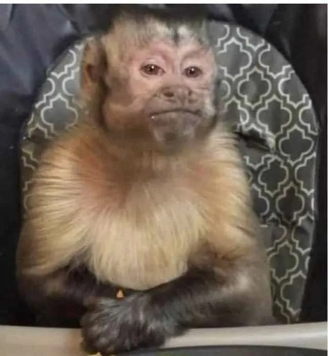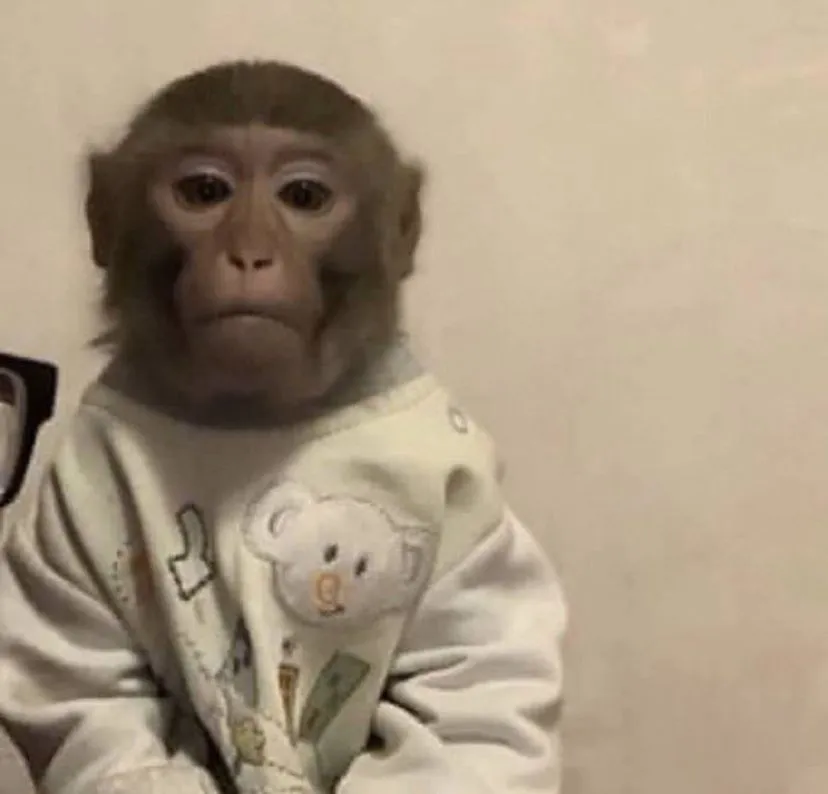 Terlihat seperti monyet tersebut sedang berpikir atau mempertimbangkan sesuatu dengan serius. Kesan ini menciptakan momen lucu dan menggemaskan karena terlihat seperti monyet tersebut sedang menghadapi situasi yang tidak biasa baginya atau sedang mencoba memutuskan apa yang harus dilakukan selanjutnya.
