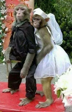 Kesan tampilan gambar lucu dua monyet sedang menikah lengkap dengan mengenakan baju pengantin jas dan gaun akan terlihat sangat unik dan menggemaskan. Bayangkan dua monyet yang berpakaian seperti pasangan pengantin manusia, dengan monyet jantan mengenakan jas dan monyet betina mengenakan gaun.