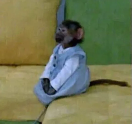 Kombinasi antara ekspresi wajah serius dengan pakaian wanita akan menciptakan kontras yang lucu dan mengundang tawa. Monyet biasanya tidak mengenakan pakaian, jadi melihatnya dengan pakaian wanita tentu menjadi hal yang aneh dan menghibur. Kesan lucu juga datang dari kepolosan monyet tersebut yang tampaknya tidak mengerti mengapa dia mengenakan pakaian wanita. Mungkin dia mencoba memahami mengapa dia berbeda dari monyet lain atau sekadar mengeksplorasi hal baru yang menarik.