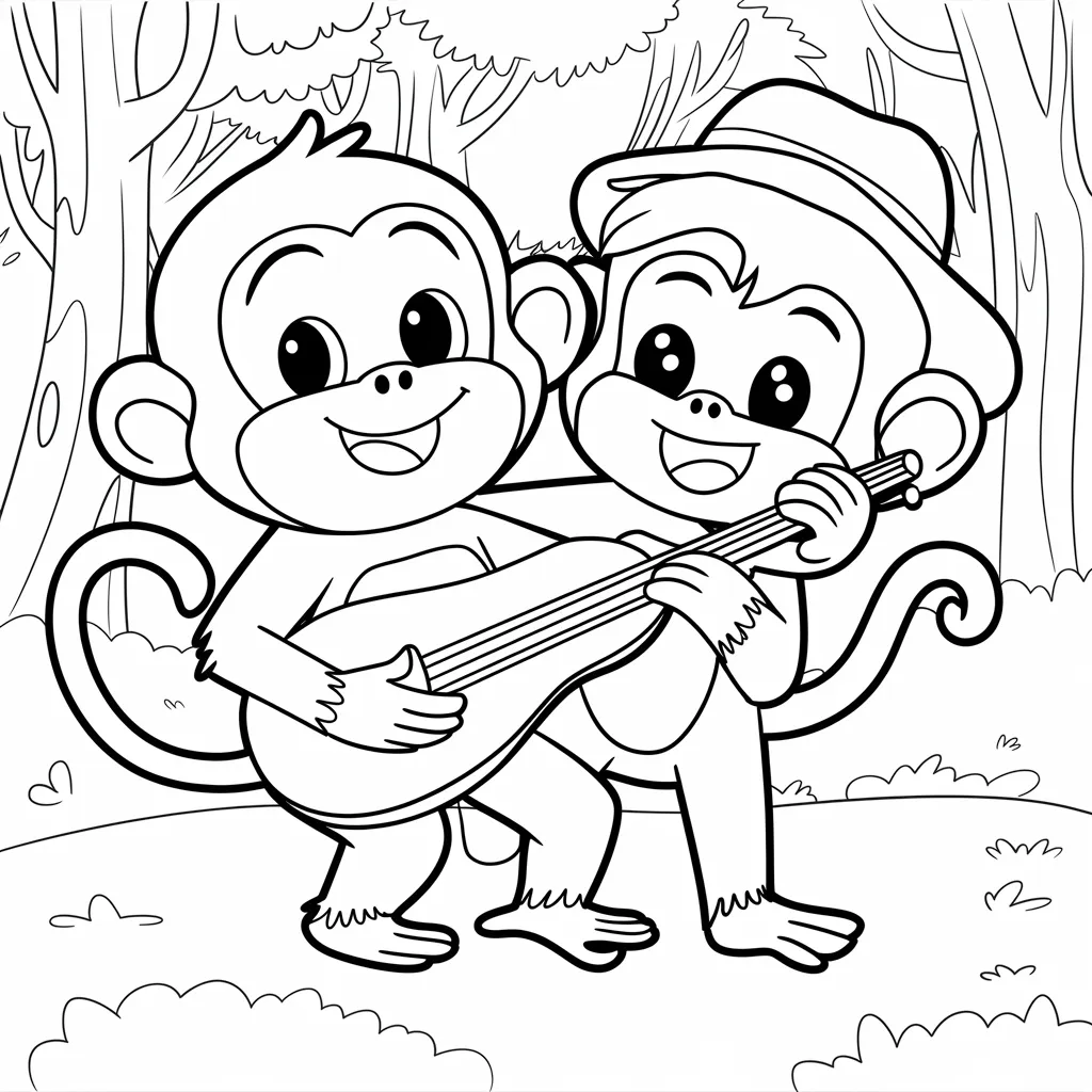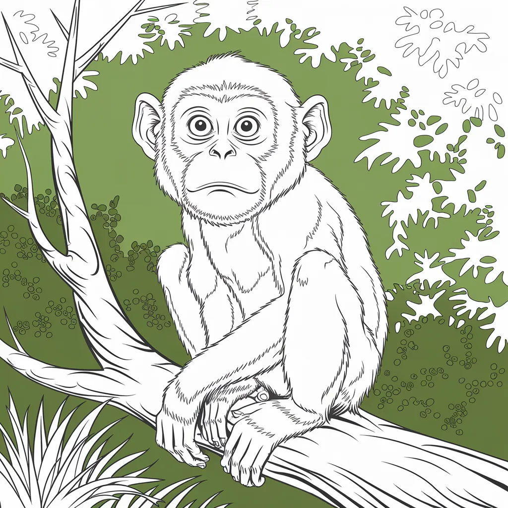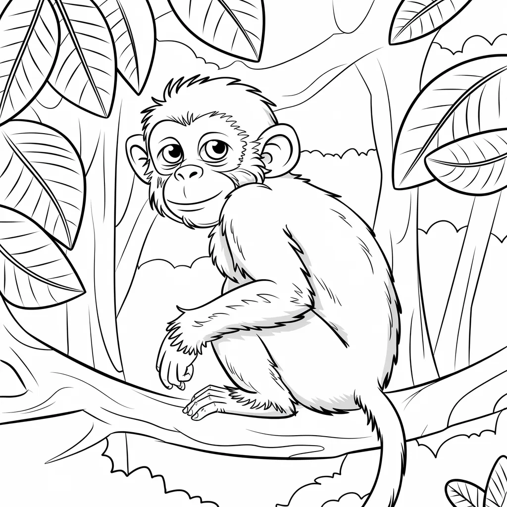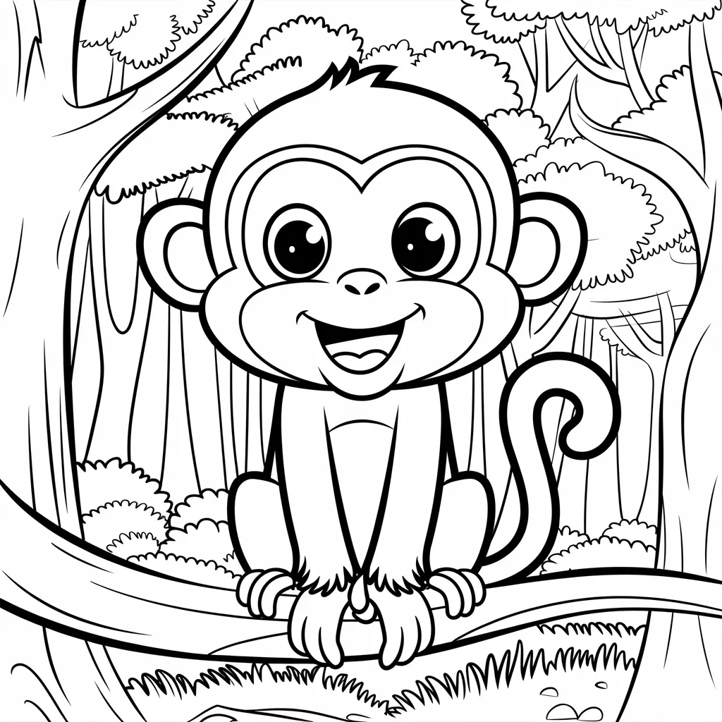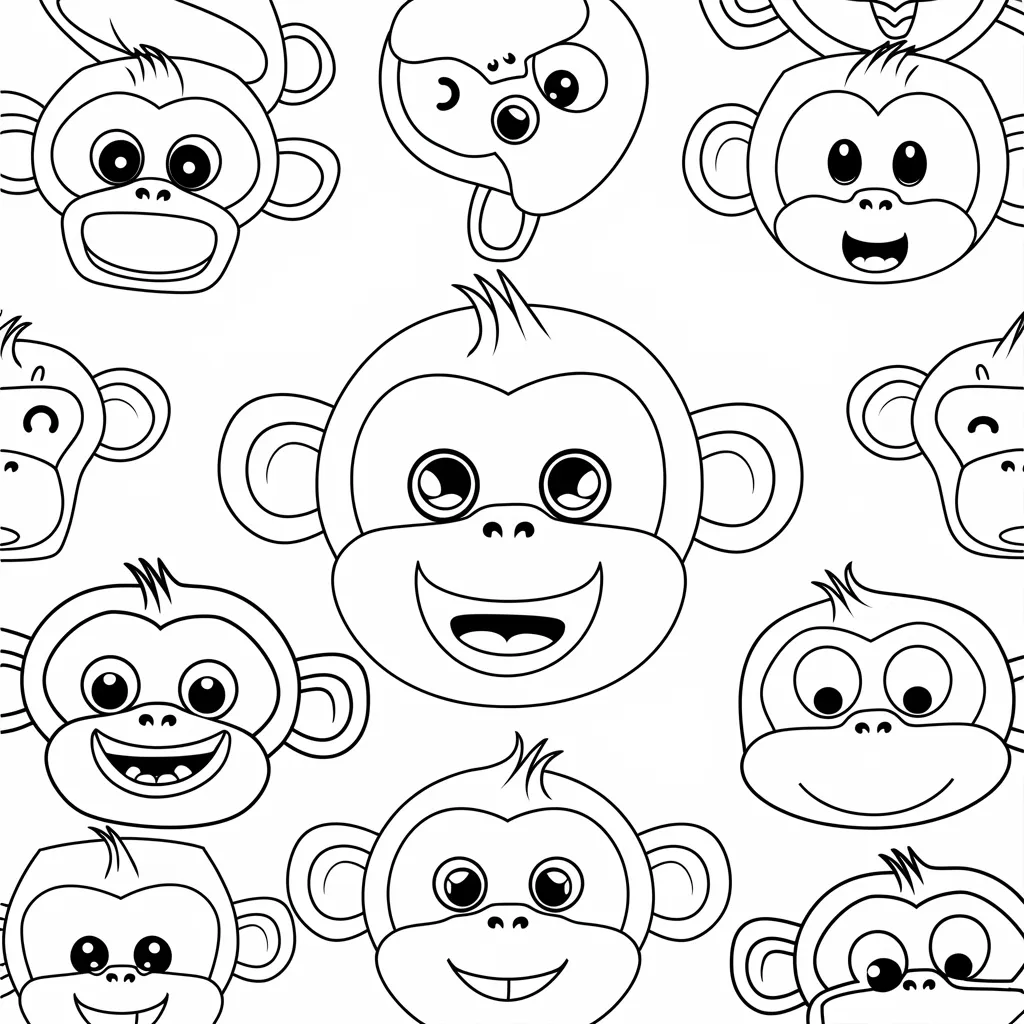 Ilustrasi monyet dengan ekspresi wajah lucu dan menggemaskan, menambah keseruan dalam mewarnai.