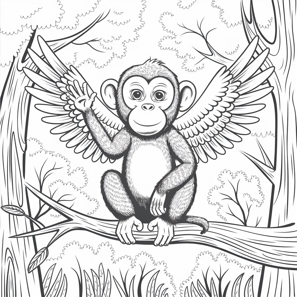 Gambar monyet dengan sayap, menggabungkan elemen fantasi dan kreatifitas.