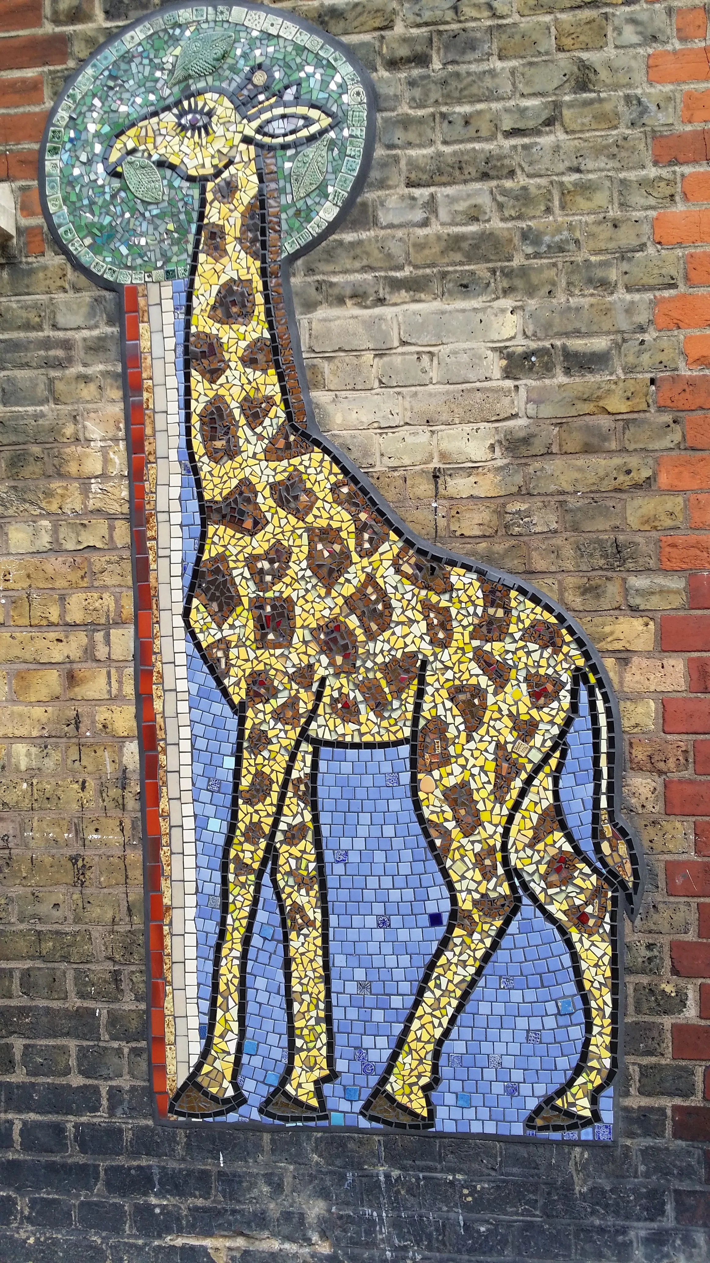 Pada lukisan mozaik ini terdapat lukisan mozaik dengan bertemakan hewan jerapah,untuk perpaduan warnanya sih sangat simpel namun tetap memiliki nilai estetik yang tinggi,jika kalian lebih detail kalian dapat melihat mozaik dari dedaunan yang mmebuat gambar mozaik dari jerapah jadi jauh terlihat lebih hidup dan tentunya keren banget .