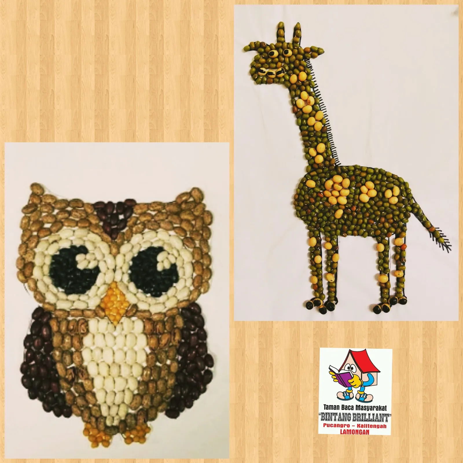 Lukisan mozaik berikutnya ini juga merupakan lukisan mozaik dengan bertemakan hewan jerapah,sangat simpel dengan terdiri dari 1 objek sahaja akan tetapi dengan susunan material yng rapi menjadikan mozaik satu ini menjadi terlihat menarik,materail yang berupa jagung dan kacang yg memiliki waran hijau dsan kuning yang cerah tersebut ,mimin pikir dapat memembuat objek jerapah tersebut nampak lebih hidup .