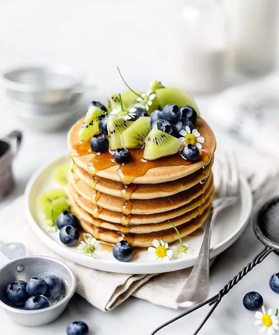 Pancake yang disajikan dengan campuran buah segar, kacang-kacangan, atau yogurt dapat menciptakan sarapan seimbang dengan kombinasi karbohidrat, protein, dan vitamin. Ini menjadikan pancake pilihan yang memuaskan selera sekaligus memberikan nutrisi yang baik di awal hari.