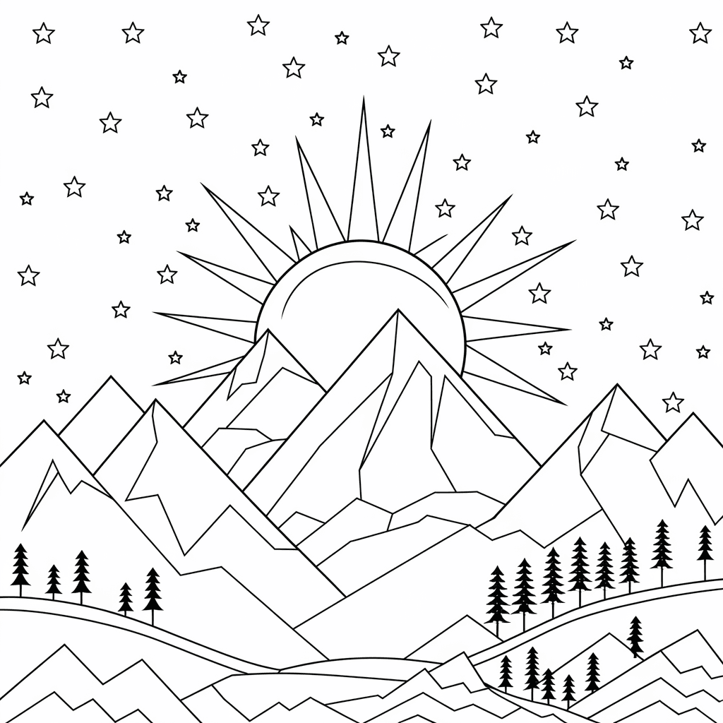 Pemandangan gunung yang megah dengan matahari terbit di balik puncaknya, menciptakan siluet yang indah.