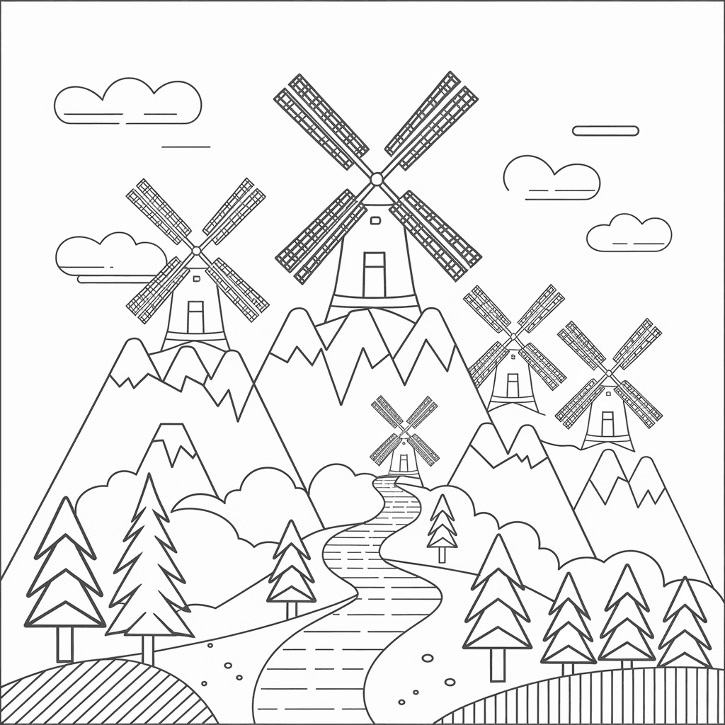 Kincir angin modern yang berdiri di lereng gunung, sumber energi terbarukan yang ramah lingkungan.