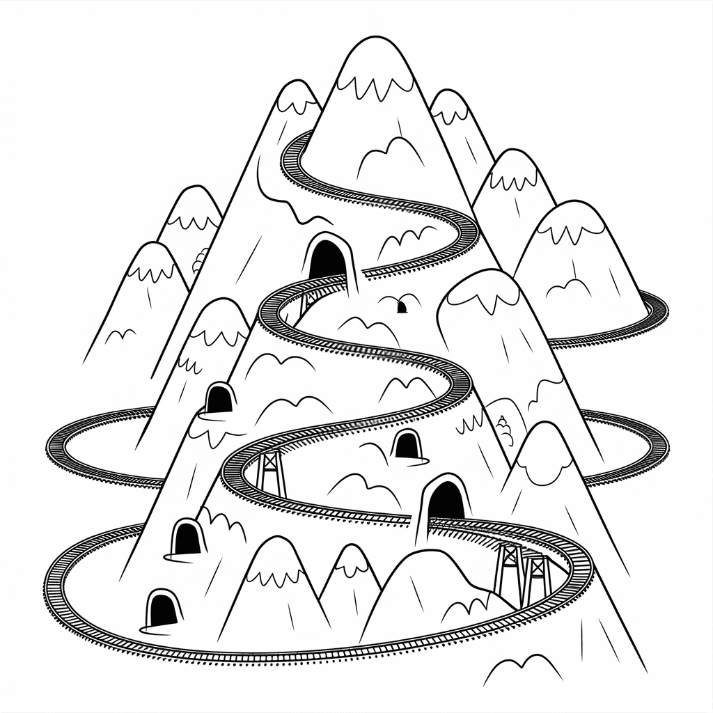 Rel kereta api yang melintasi pegunungan, menunjukkan perpaduan antara alam dan teknologi.