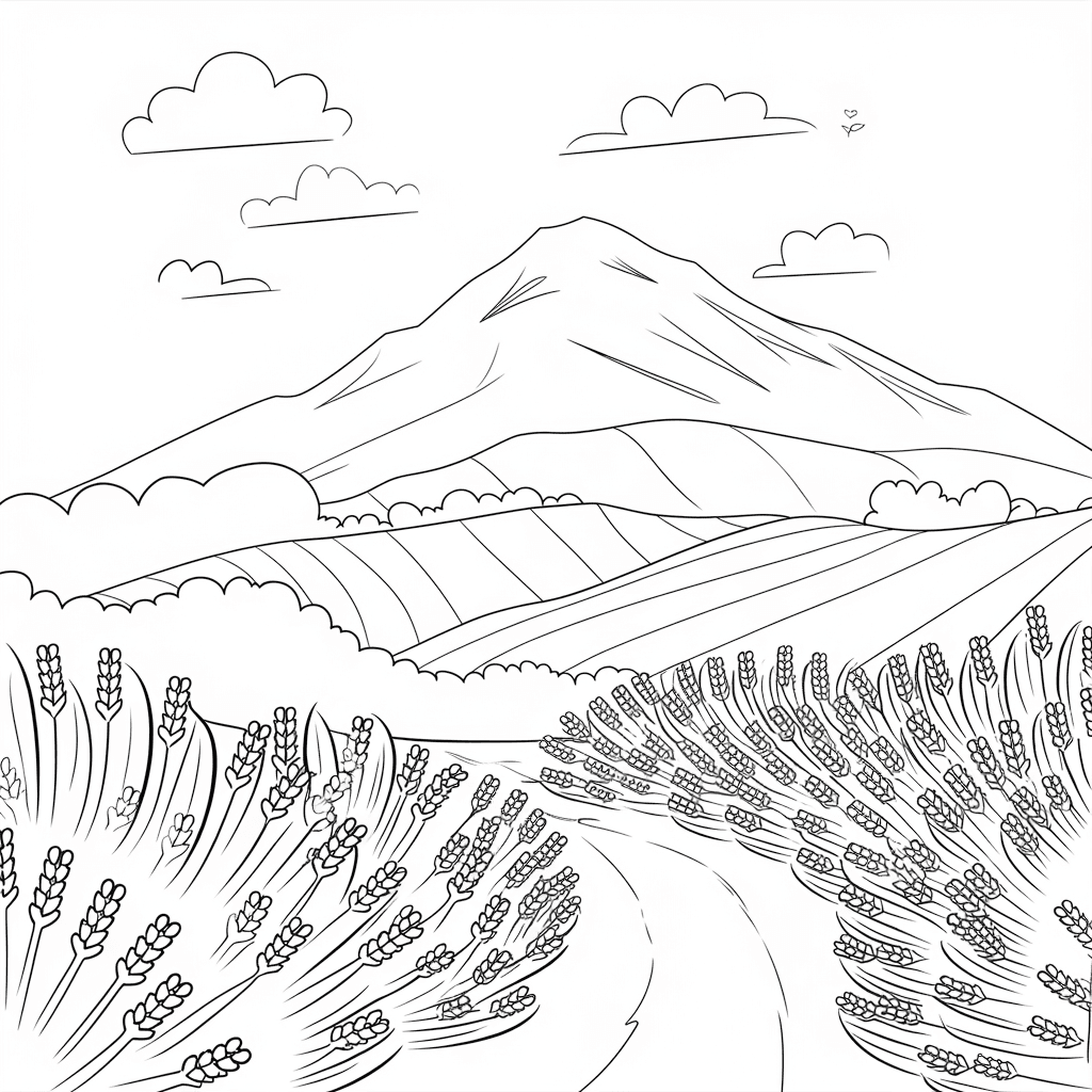 Ladang lavender yang luas di kaki gunung, menyajikan pemandangan dan aroma yang menenangkan.
