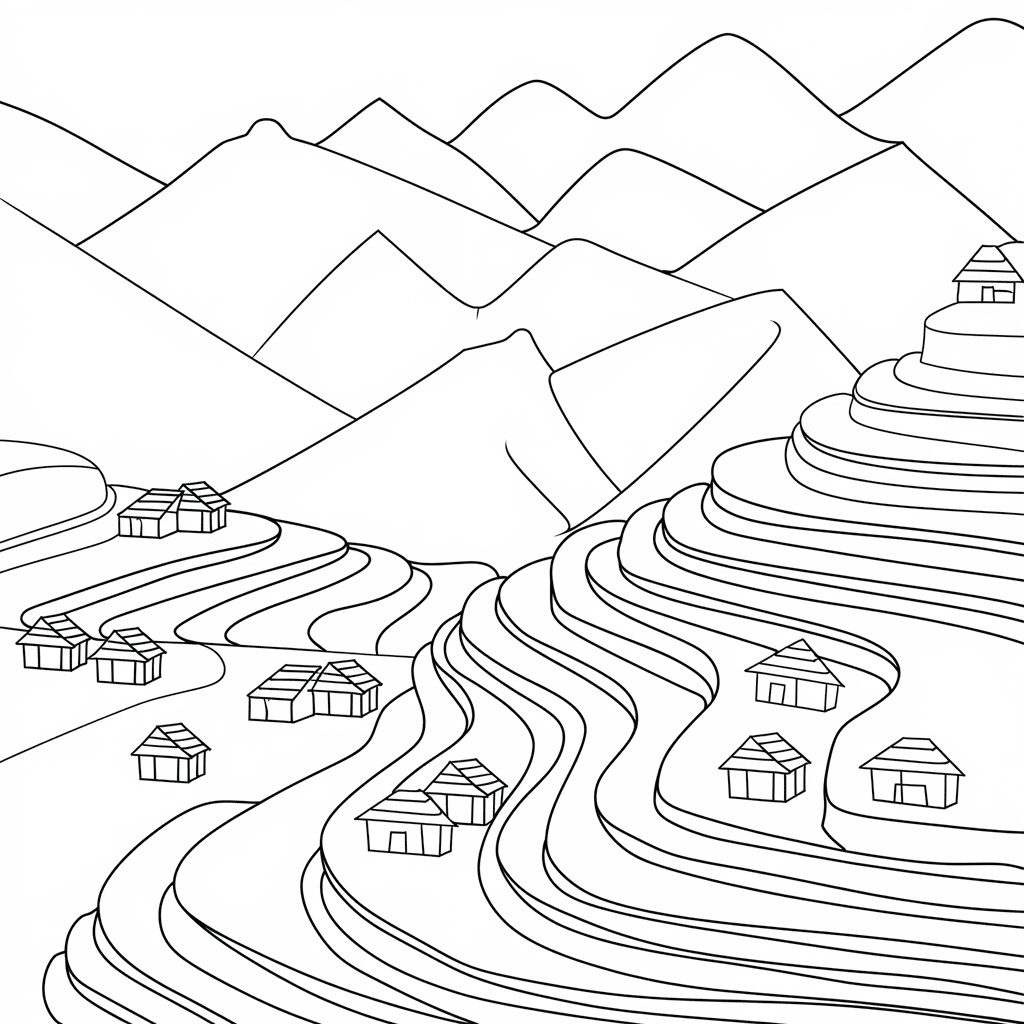 Sawah bertingkat yang terletak di lereng gunung, menunjukkan keharmonisan antara manusia dan alam.