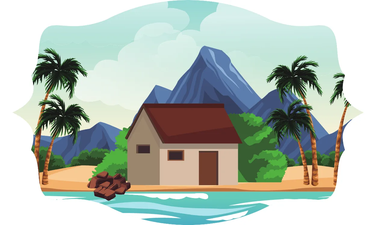 Pad gambar terakhir ini, kalian akan dapat melihat tampilan pemandangan rumah sederhana bewarna cokelat berlokasi dipinggr pantai dengan beberapa pohon tumbuh disekitarnya. Pemandangan tersebut memberikan kesan yang tenang dan sejuk. Rumah sederhana dengan warna cokelat memberikan kesan yang natural dan menyatu dengan lingkungan sekitarnya. Terdapat beberapa pohon yang tumbuh di sekitarnya yang menambah suasana asri dan menyejukkan. Lokasinya yang berada di pinggir pantai menambah kesan yang menenangkan dan menyejukkan.