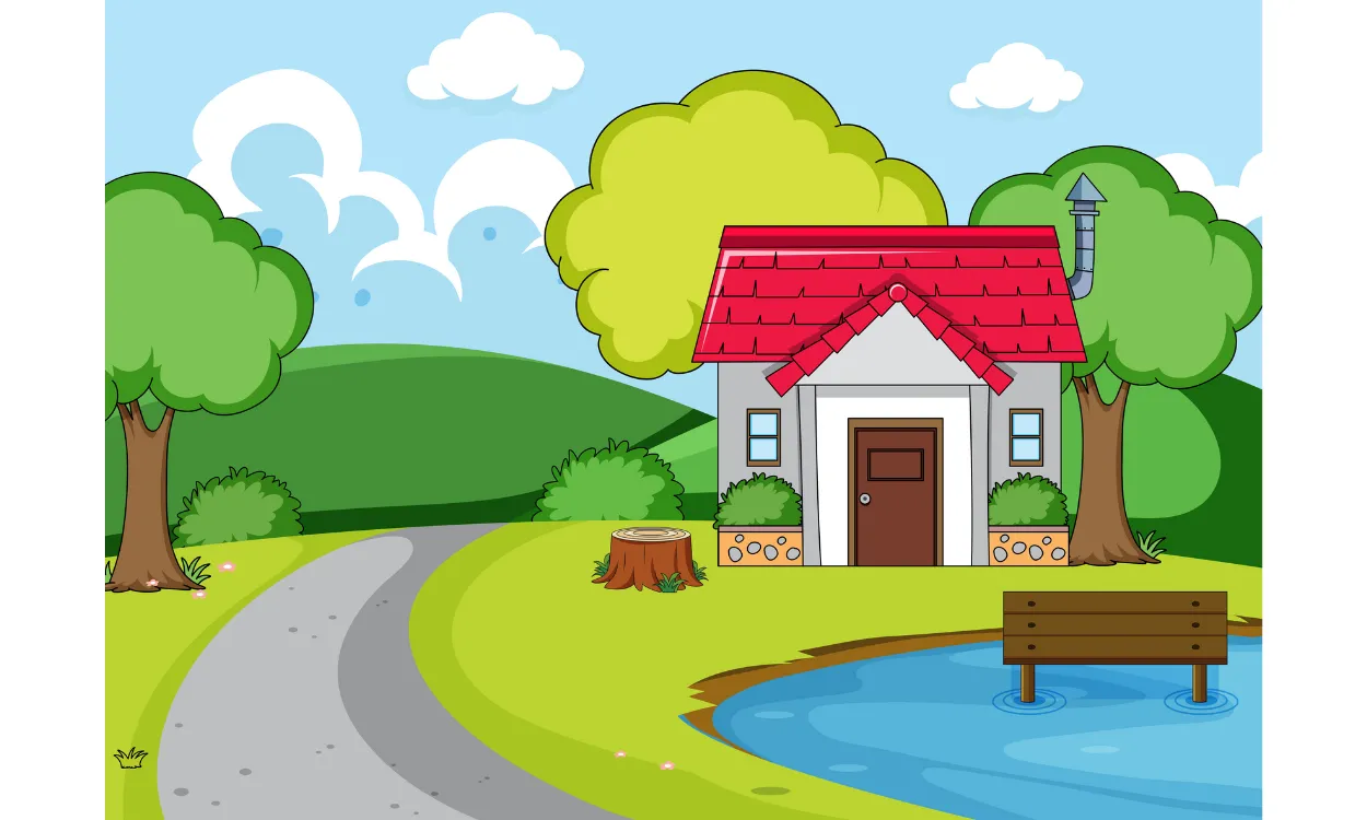 Adapun pada gambar diatas terdapat tampilan pemandangan rumah sederhana dengan atap bewarna jingga dan biru dengan didekatnya terdapat danau dan perbukitan. Tampilan gambar pemandangan rumah sederhana dengan atap berwarna jingga dan biru serta dikelilingi oleh danau dan perbukitan memberikan kesan yang menenangkan dan indah. Warna-warna cerah pada atap rumah menambahkan sentuhan yang ceria dan menyegarkan pada keseluruhan pemandangan. Danau yang mengalir di sekitar rumah memberikan kesan damai dan menenangkan. Sementara perbukitan di kejauhan menambahkan latar belakang yang indah dan menambahkan kedalaman pada tampilan pemandangan.