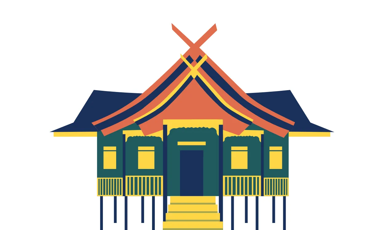 Gambar kartun rumah panggung dengan warna hijau dan kuning memberikan kesan yang ceria dan menyenangkan. Warna hijau yang dominan memberikan kesan segar dan alami, sedangkan warna kuning memberikan kesan ceria dan cerah. Tampilan rumah panggung sendiri memberikan kesan tradisional dan klasik, dengan keunikan bentuk dan konstruksi yang berbeda dari rumah pada umumnya. Kombinasi warna yang cerah dan rumah panggung yang unik membuat gambar tersebut terlihat menarik dan mengundang perhatian.