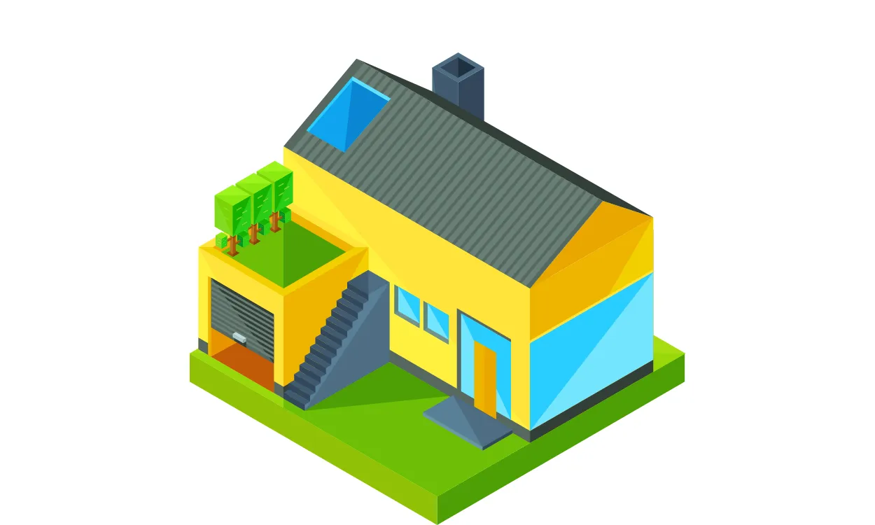 Gambar kartun rumah dengan tampilan warna kuning memberikan kesan keceriaan dan kehangatan. Warna abu-abu pada atap dan tangga memberikan kesan kesan elegan dan modern. Adanya garasi pada rumah tersebut menambah fungsionalitas dan kepraktisan rumah. Keseluruhan tampilan rumah terlihat simpel namun tetap menarik dan fungsional.