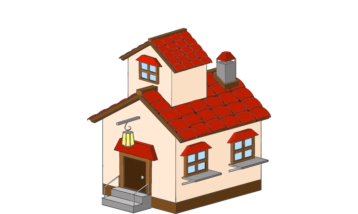 Tampilan gambar kartun rumah dengan warna merah dominan dan sedikit putih pada beberapa bagian dapat memberikan kesan kehangatan, keceriaan, dan kekuatan. Warna merah sering dikaitkan dengan semangat dan gairah, sementara warna putih memberikan kesan kesederhanaan dan kemurnian. Penggunaan kedua warna ini pada rumah juga dapat memberikan kesan kontras yang menarik dan mencolok, sehingga rumah menjadi lebih menonjol dan mudah dikenali.