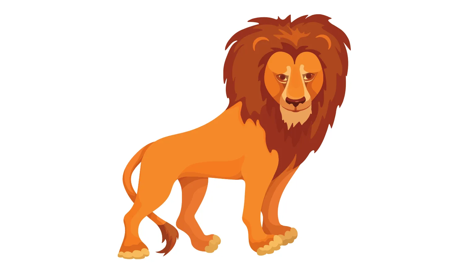 Kesan tampilan gambar kartun singa jantan tampan dan gagah adalah keperkasaan dan keanggunan yang memikat. Singa jantan dewasa sering kali digambarkan dengan kepala yang besar, ciri khas janggut yang tebal, dan ekspresi yang penuh percaya diri. Tampilan mata yang tajam dan rahang yang kuat menunjukkan kekuatan dan dominasi yang dimiliki oleh singa jantan.