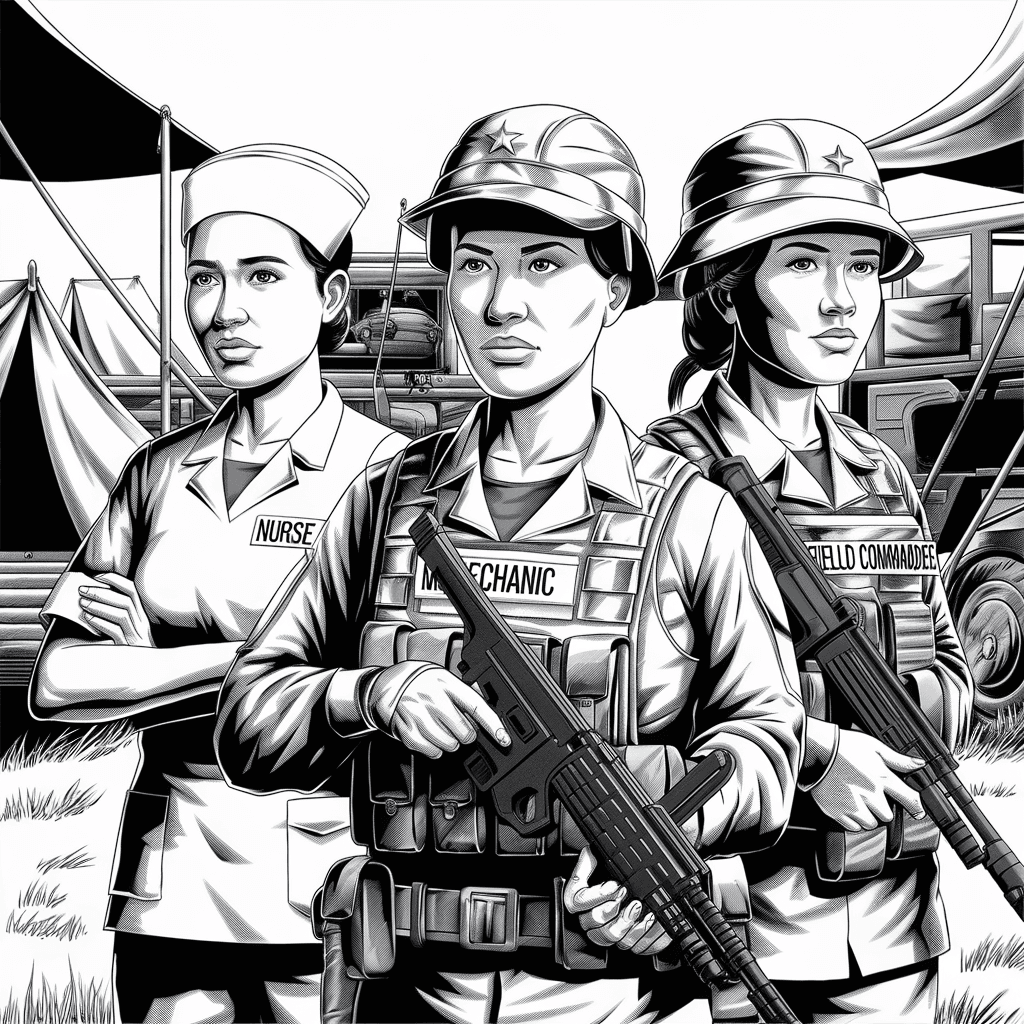 Ilustrasi prajurit wanita TNI yang kuat dan berwibawa, menunjukkan peran penting wanita dalam angkatan bersenjata.
