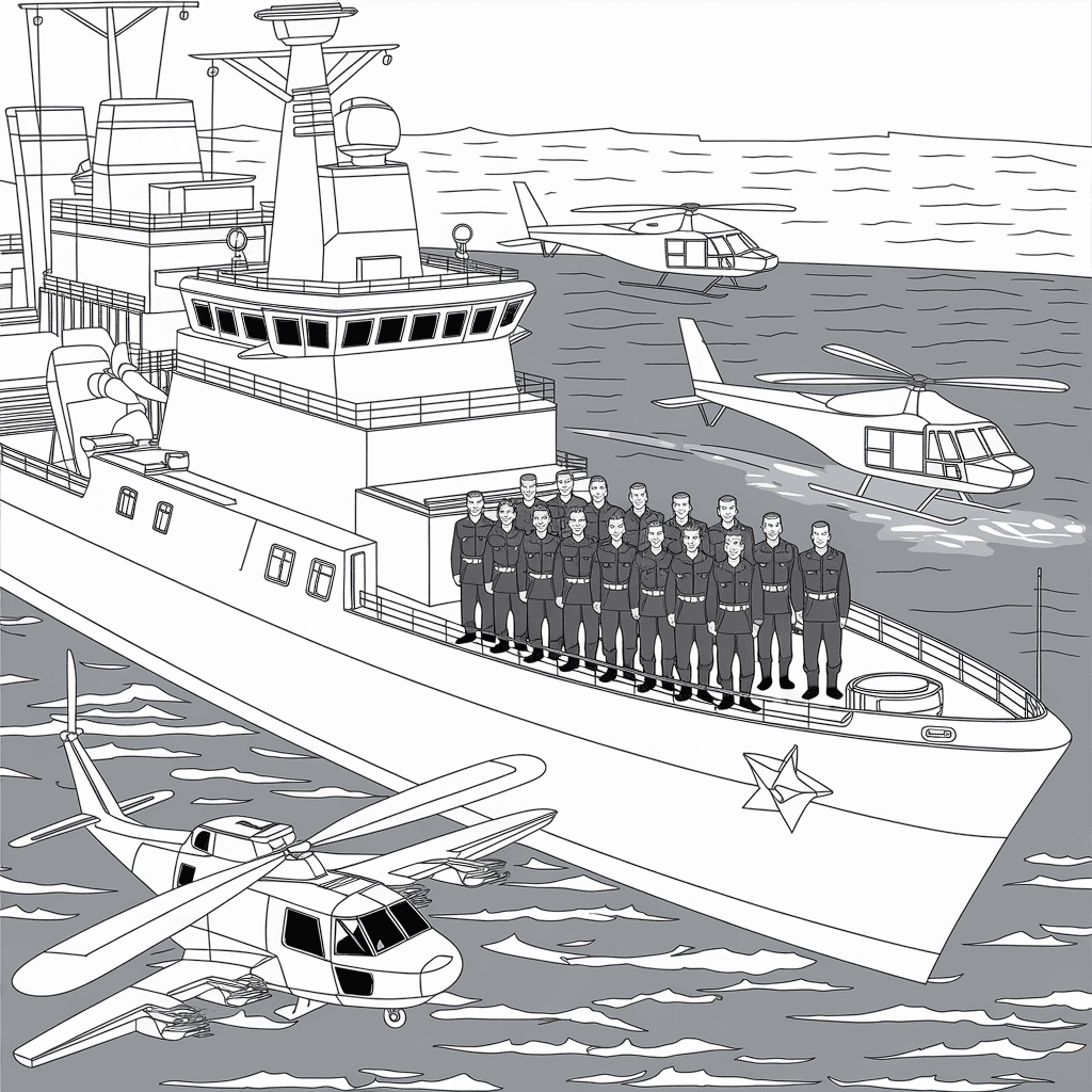Ilustrasi prajurit angkatan laut TNI yang sedang melakukan latihan di kapal selam atau kapal perang, menampilkan keahlian mereka di laut.