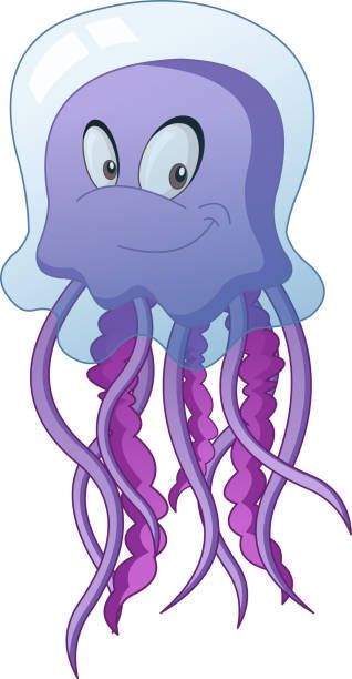 Terlihat pada gambar diatas seekor ubur-ubur kartun dengan seluruh bagian tubuhnya bewarna ungu, terlihat bahwa ubur-ubur tersebut memiliki delapan ekor tentakel yg sangat berguna sekali untuk menangkap mangsa serta menjadi alat pertahann diri dari predator lautan. Gambar-gambar kartun yg terdapat diatas, dapat diprint/cetak dan setelahnya di tempelkan pada ruangan kelas taman kanak-kanak. Hal demikian perlu untuk dilakukan agar anak-anak murid lebih mengenal spesies laut, dapat menjadi inspirasi menggambar dan lain masih banyak lainnya.