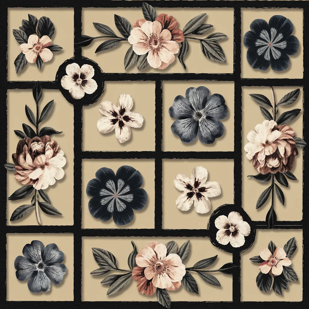 Ilustrasikan motif bunga atau daun dalam warna hitam untuk tampilan yang feminin dan artistik.