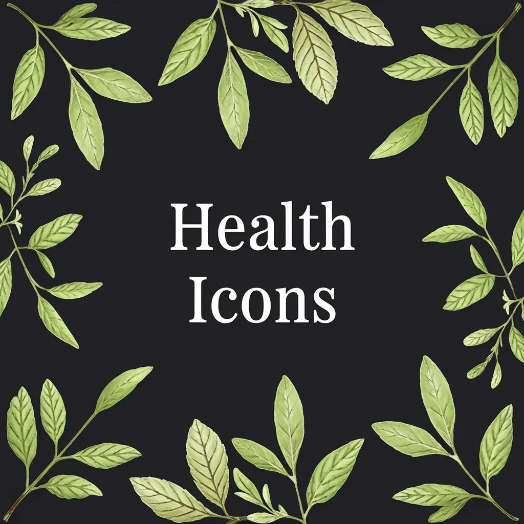 Gunakan ikon-ikon kesehatan seperti hati, stetoskop, atau daun herbal dalam warna hitam untuk kategori “Kesehatan” atau “Kesehatan”.