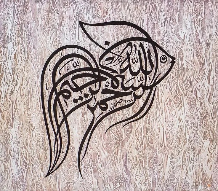 Terlihat menarik dan indah banget tampilan gambar kaligrafi berbentuk ikan yg terdapat pada gambar diatas. Membahas mengenai kaligrafi bahwasanya,  kaligrfai tak hanya sebagai karya seni rupa, kaligrafi dalam Islam sangat dihormati karena menyatukan bahasa dengan kepercayaan. Karena itu lah, Kita sering melihat kaligrafi Islam terpampang di dinding-dinding masjid, tidak hanya di Indonesia namun juga hampir di seluruh dunia.