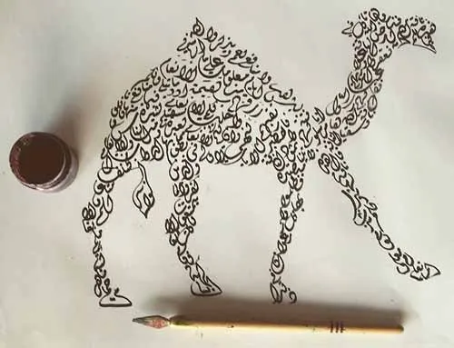 Bagi kalian yg sedang mencari tampilan gambar kaligrafi bentuk hewan yg indah namun mudah untuk dilukis, maka mungkin gambar kaligrafi berbentuk unta diatas lah yg kalian cari sob.