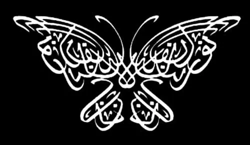 Pada gambar berikutnya ini mimi sajikan pula tampilan gambar kaligrafi berbentuk kupu-kupu dengan pewarnaanya yakni, hitam sahaja sob, namun meski demikian hasilnya tetap kelihatan indah dan cantik.