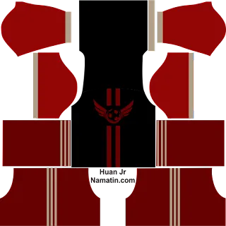 Pada gambar terakhir ini mimin hadirkan pada kalian gambar  Kit Dls futsal dengan tampilan simpel bewarna merah dan cokelat lengkap dengan corak logo berbentuk naga.