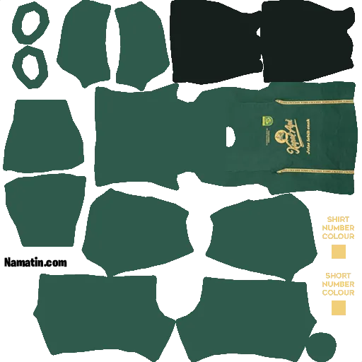 Berikut pada gambar diatas ialah Kit Dls Persebaya dengan tampilan warna hijau gelap lengkap dengan objek gambar berupa logo kota surabaya berupa Patung Sura dan Baya .