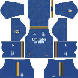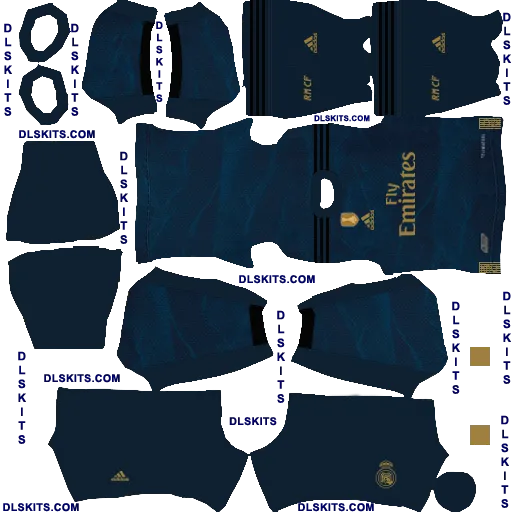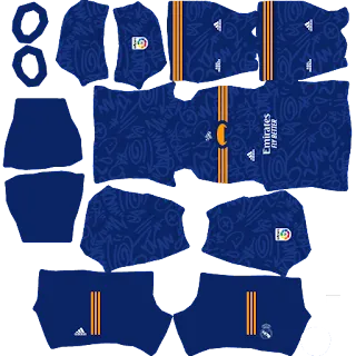 Tampak pada gambar diatas Kit Dls Real Madrid bewarna biru lengakap dengan motif garis warna emas pada beberapa bagian. Kit DLS Real Madrid adalah jersey resmi klub Real Madrid yang dapat digunakan oleh pemain dalam game Dream League Soccer. Kit ini biasanya terdiri dari jersey, celana pendek, dan kaus kaki dalam warna yang sama dengan desain yang unik untuk musim tertentu.