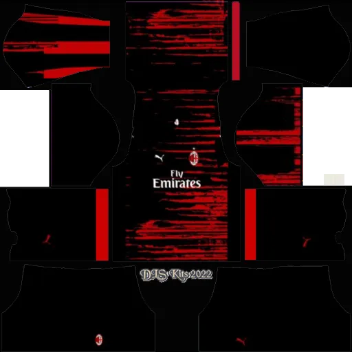 Keren banget ya sob tampilan Kit FTS club sepak bola A.C. milan dengan paduan warna hitam dan motif merah menyala. Tampilan Kit FTS (First Touch Soccer) club sepak bola A.C. Milan dengan paduan warna hitam dan motif merah menyala memberikan kesan yang kuat, berani, dan agresif.