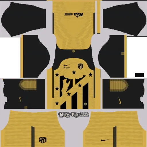 Tampak pada gambar diatas Kit FTS club sepak bola Atletico Madrid dengan warna kuning dan hitam. Kombinasi warna kuning dan hitam pada Kit FTS Atletico Madrid menciptakan kesan yang kuat, berani, dan tangguh. Warna merah melambangkan semangat, keberanian, dan semangat untuk menang, sementara warna hitam menunjukkan kekuatan, keberanian, dan keanggunan. Kombinasi warna ini menghasilkan tampilan yang dramatis dan menarik, yang telah menjadi ciri khas klub Atletico Madrid selama bertahun-tahun.