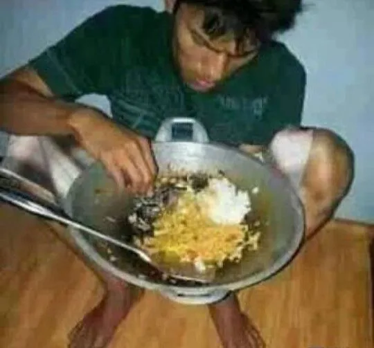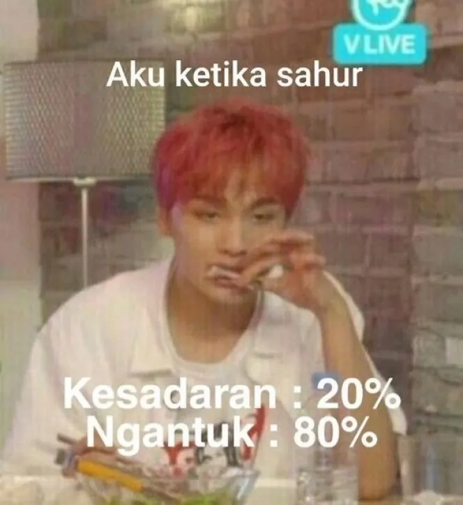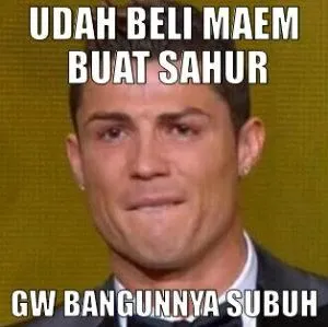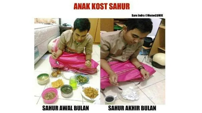 Seorang pria bangun terlambat untuk sahur dan menemukan nasi yang sudah dingin. Dia berkata, “Nasi dingin? Ah, mungkin ini yang disebut ‘sahur kuno’.”