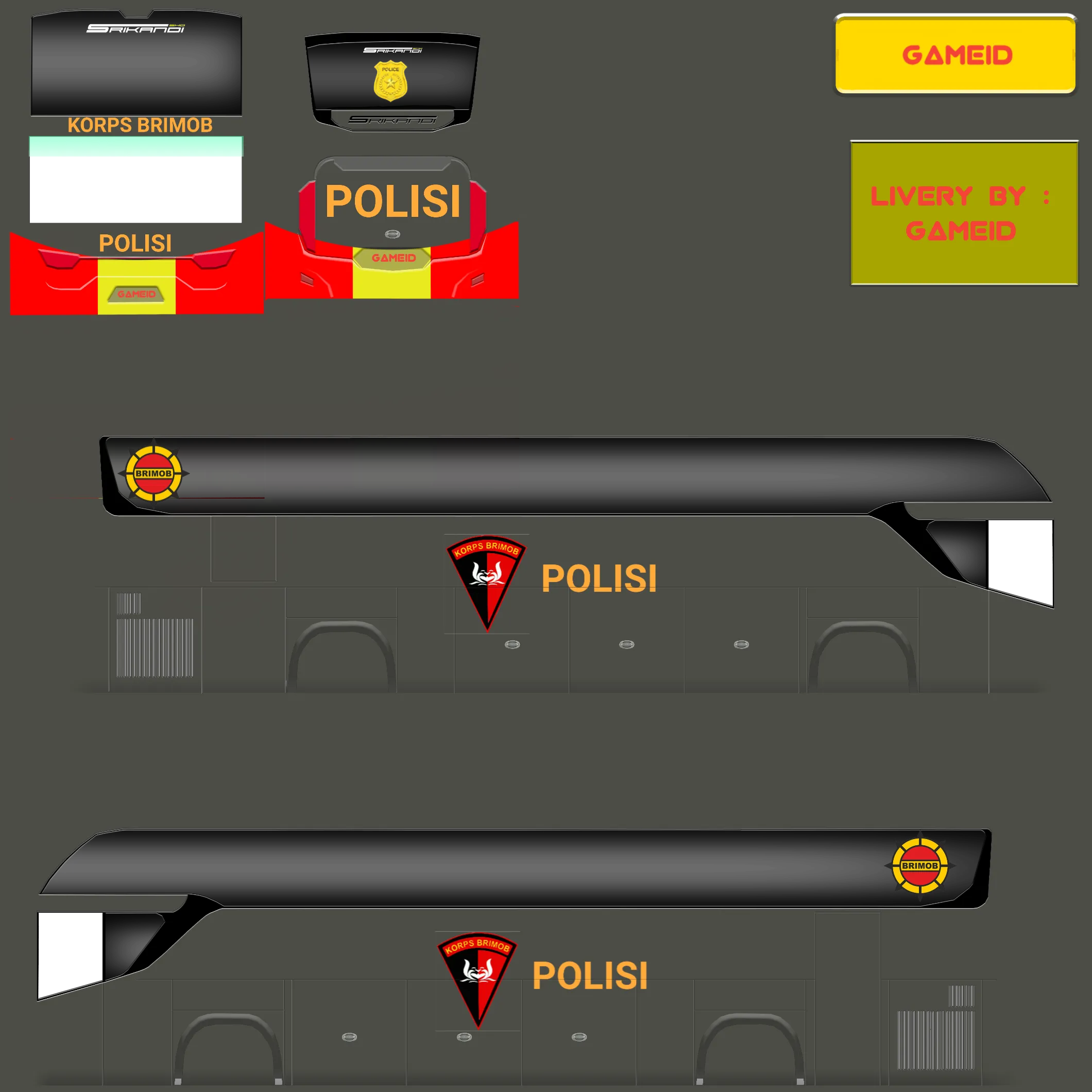 Tidak kalah menarik dari sebelumnya, dalam tampilan pada sisi livery ini menegaskan dengan jelas tulisan polisi dan logo korps brimob dan dengan kombinasi warna yang pas menjadikan livery ini sangatlah unik,