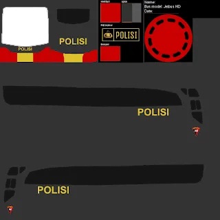 Adapun pada gambar diatas ialah tampiln gambar Livery Bus HD Polisi lengkap dengan tulisan corak tulisan “POLISI” serta pewarnaan warna utama abu-abu yg super keren dan gagah.