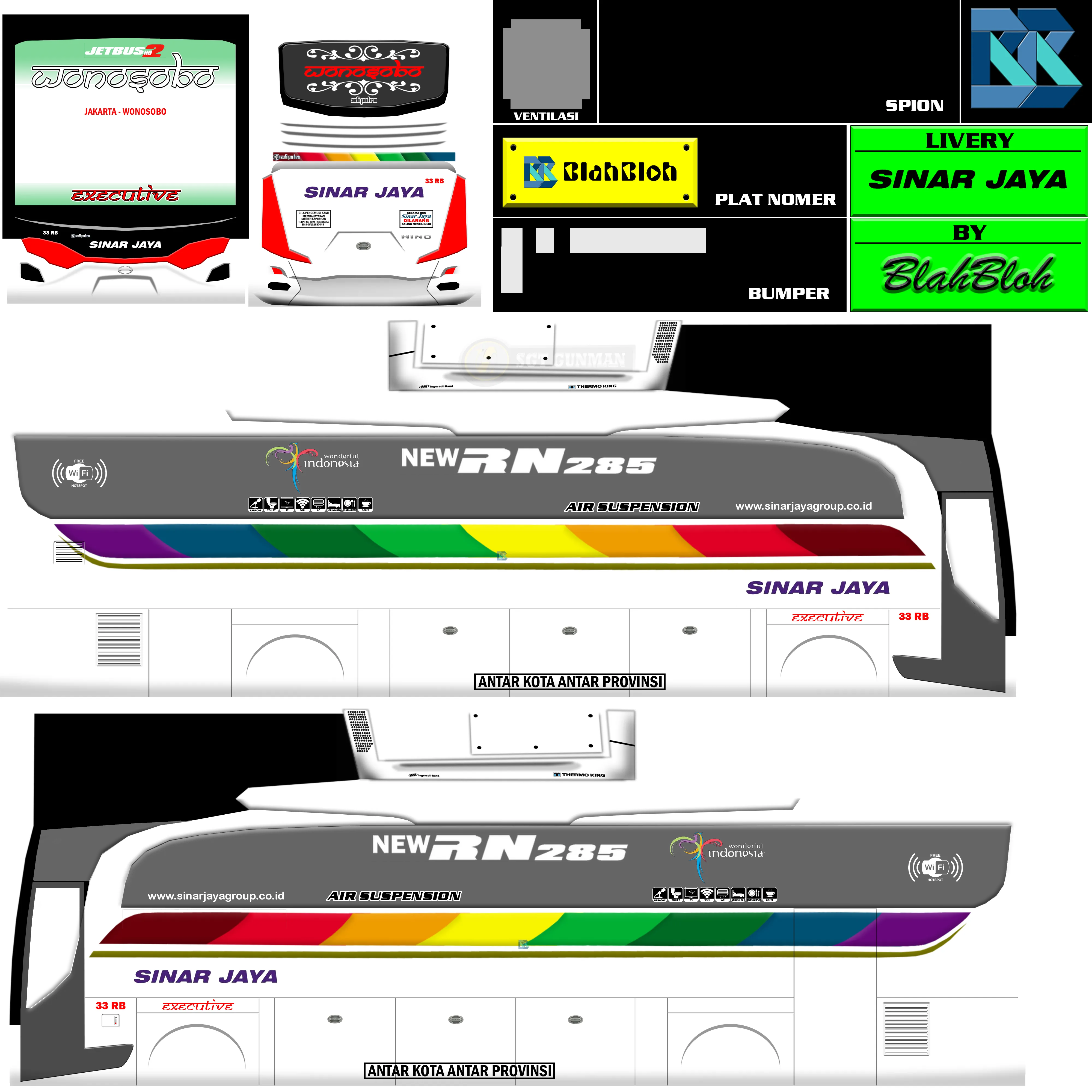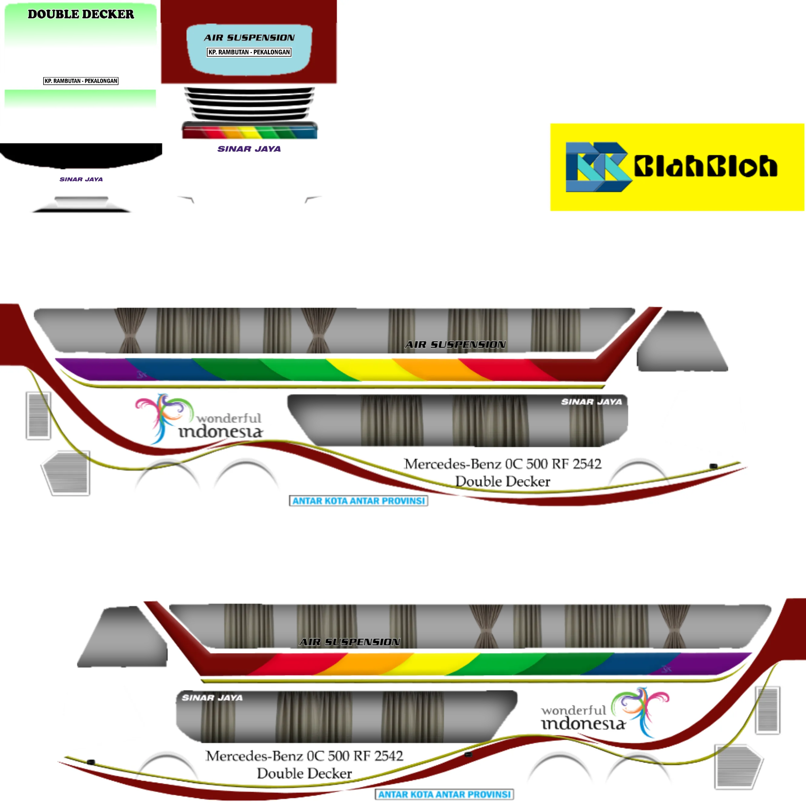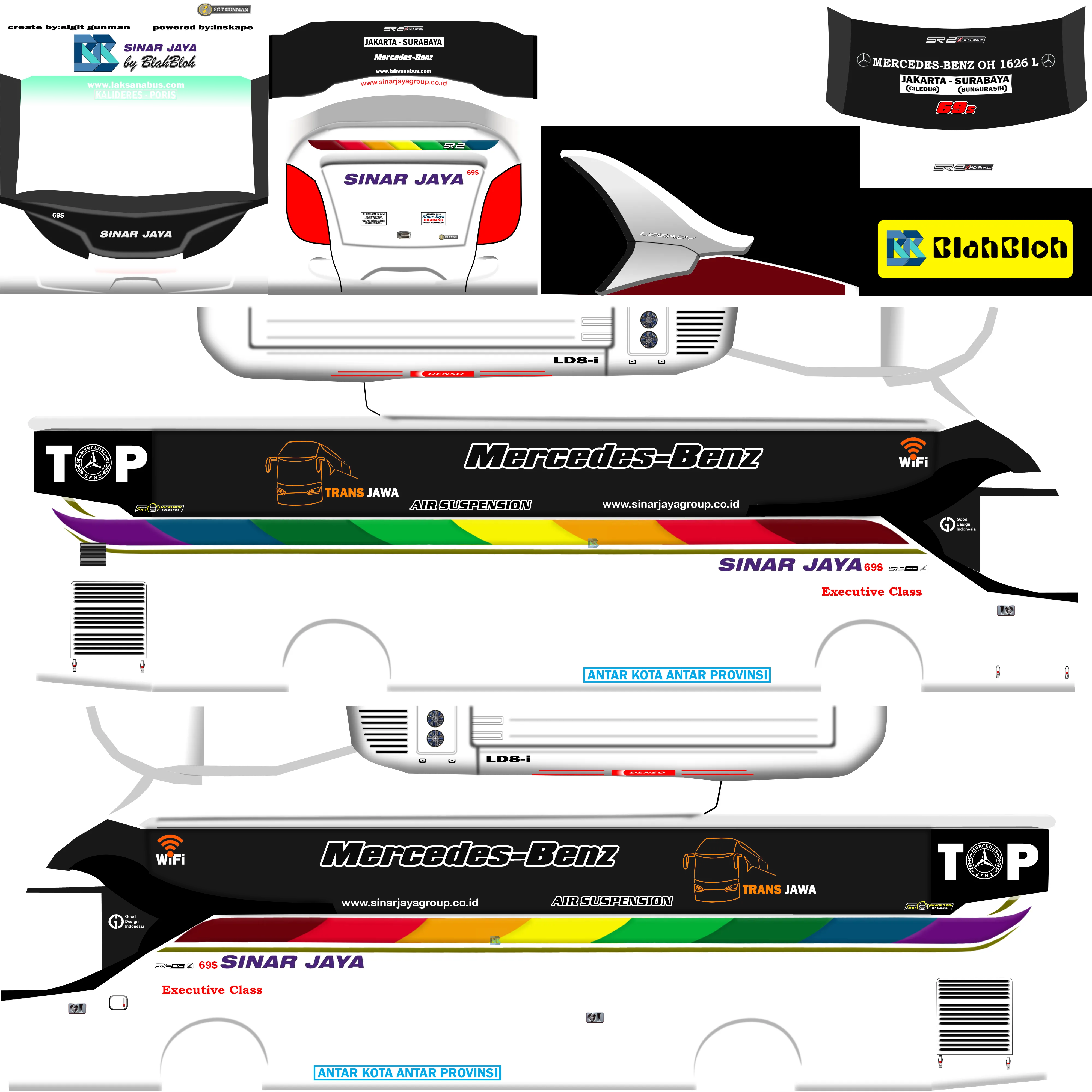 Desain yg terkesan simpel namun terlihat elegan yg dibalut dengan tulisan sinar jaya yg terkenal dengan bus yg sangat mewah, livery ini dibuat mengikuti dengan tampilan asli dari bus sinar jaya. Bila kalian belum menemukan livery yg cocok, mungkin ini dapat menjadi pilihan alternatif lain untuk dapat kalian pakai.