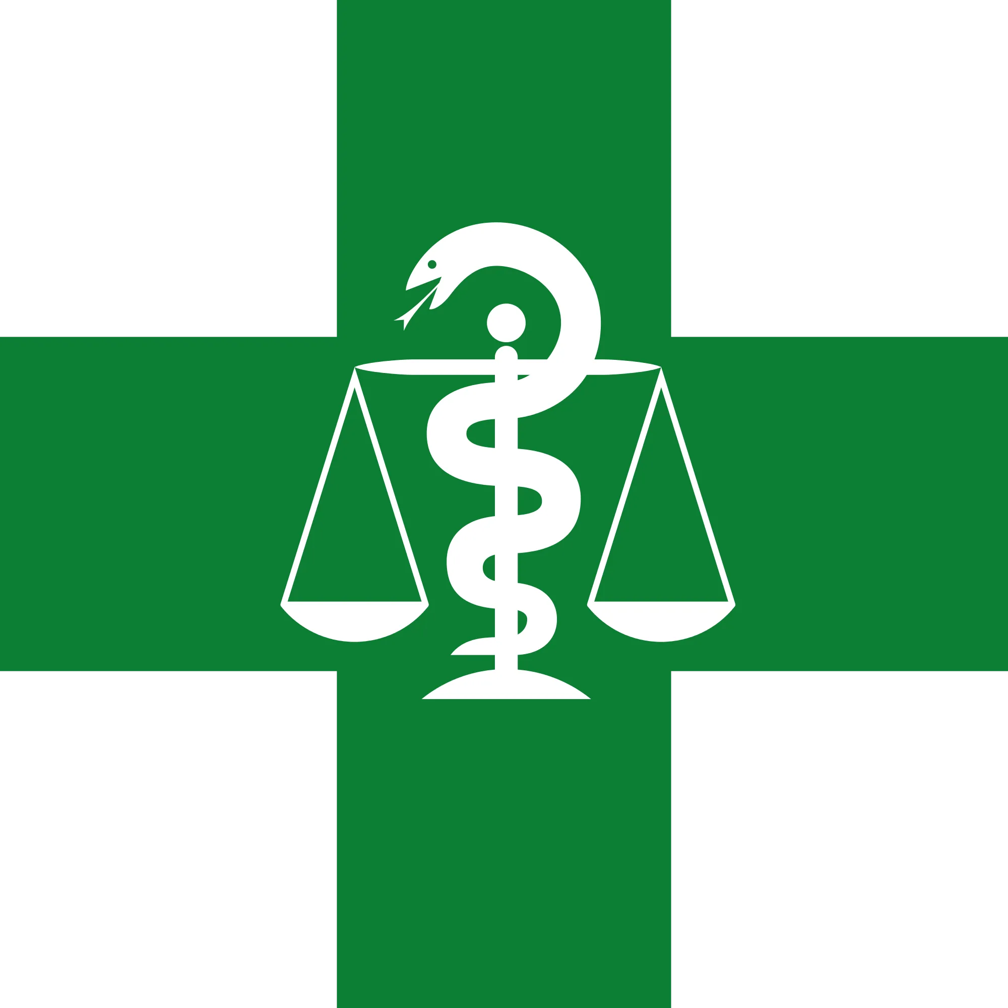 Pada gambar berikut ini mimin hadirkan pada kalian gambar logo apotek hadir denga tampilan warna hijau , adapun desain dan bentuk logo diayas ialah berupa seekotr ular yg sedang melilit sebuah timbangan . Logo apotek diatas terlihat semakin menarik dengan dihadirkanny warna latar belakang berbentuk sebuah palang yang menyerupai tanda jumlah bewarna hijau.