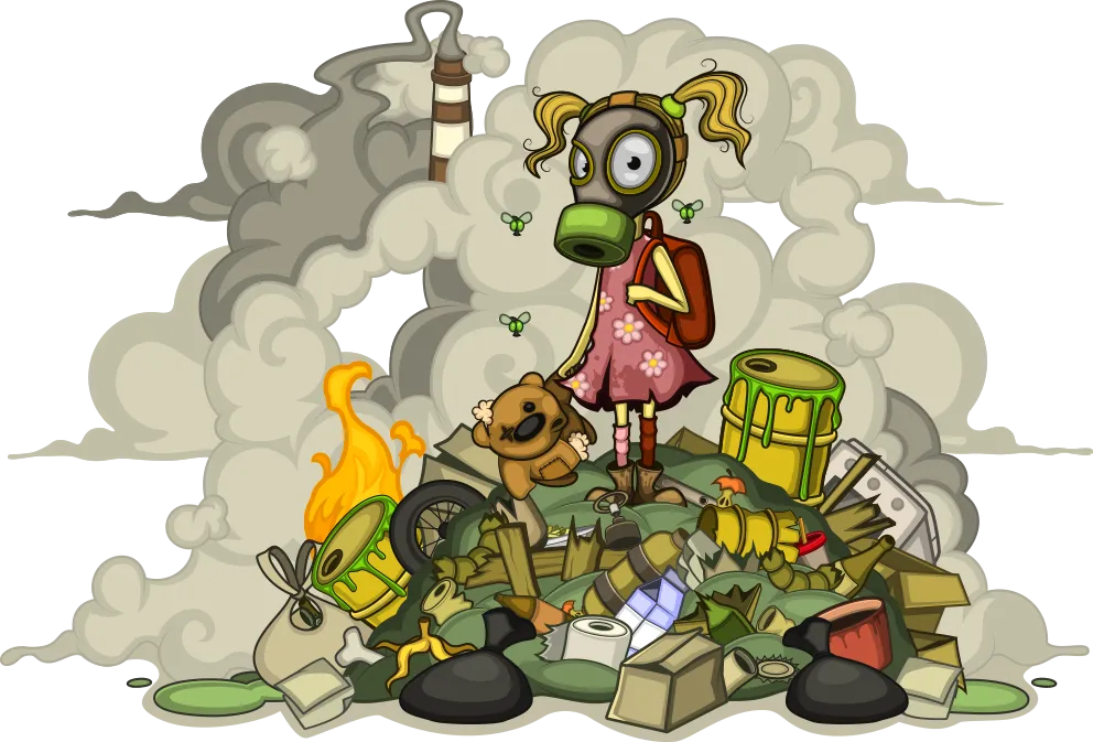 Berikut ini terdapat gambar logo buang sampah PNG berupa seorang anak kecil sedang memakai masker anti racun sedang membawa boneka yg rusak serta berdiri diatas banyaknya sampah yg menumpuk . Logo diatas benar-benar membuat terpukul dan tersadar untuk pentingnya membuang sampah pada tempatnya sehingga lingkungan bersih dan nyaman dapat tercipta. Keren dan menarik tentunya bila gambar diatas bila dipakai dalam membuat iklan .