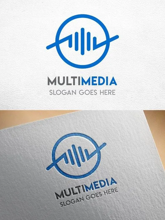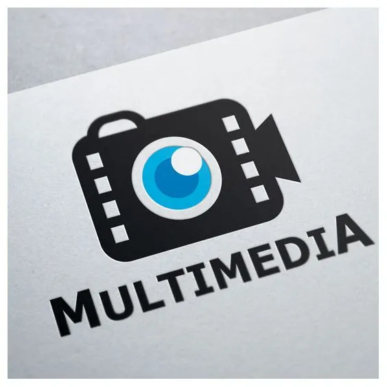 Desain gambar multimedia sering memasukkan elemen simbol yang merepresentasikan berbagai jenis media. Sebagai contoh, simbol kamera dapat digunakan untuk mencerminkan fokus pada fotografi, sedangkan ikon speaker melambangkan aspek audio, dan simbol film dapat mewakili unsur video. Penggunaan simbol ini membantu mengkomunikasikan diversitas media yang tersedia melalui perusahaan atau produk tersebut.