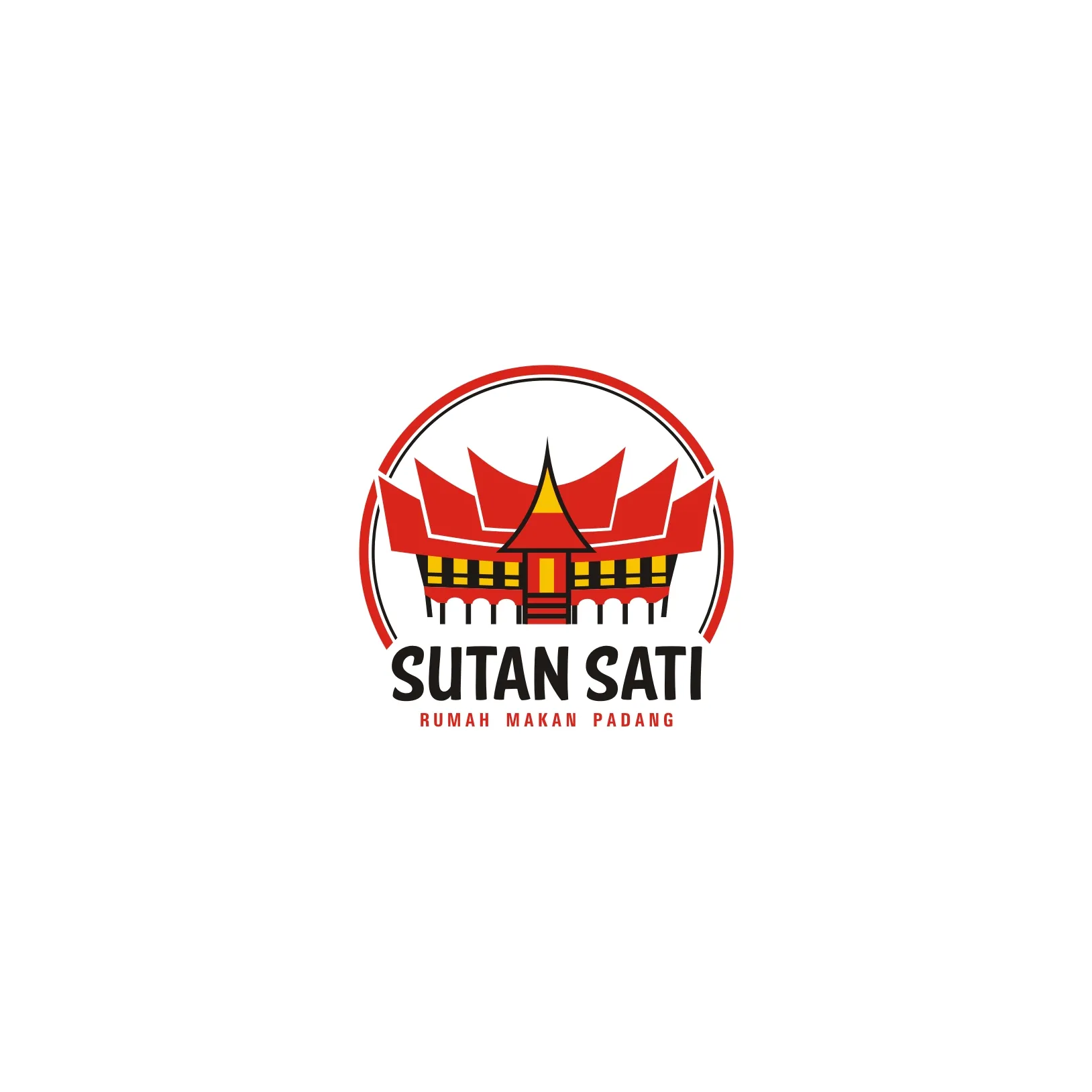 Adapun berikut ini terdapat tampilan logo rumah makan padang dengan tampilan objek gambar berupa icon rumah gadang bewarna hitam, merah dan kuning. Adapun info menarik mengenai nasi padang yg perlu untuk kalian ketahui ialah bahwa, nasi padang ialah nasi putih yg disajikan dengan berbagai macam lauk-pauk khas Indonesia. Tepatnya nasi padang adalah sebuah hidangan yang disajikan secara lengkap secara prasmanan dengan daging, ikan, sayuran, dan makanan pedas yang dimakan dengan nasi putih. Kata padang merujuk pada ibu kota provinsi Sumatra Barat yakni Padang.