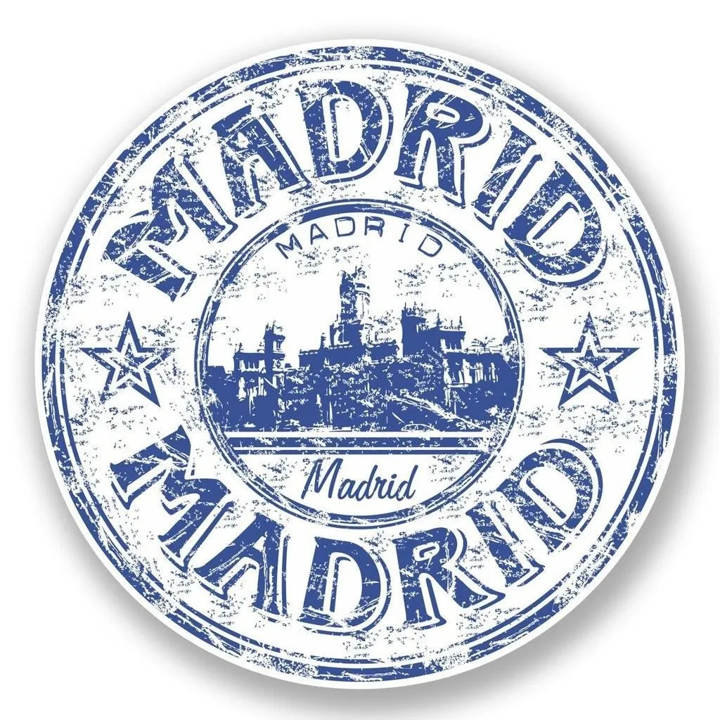 Kesan tampilan gambar logo stempel keren dengan warna biru lengkap dengan tulisan “Madrid” dan latar belakang bangunan di daerah tersebut adalah memberikan kesan yang kuat tentang identitas Madrid sebagai ibu kota Spanyol yang kaya akan sejarah dan budaya. Logo ini menampilkan tulisan “Madrid” yang terletak di atas latar belakang bangunan-bangunan ikonik Madrid, seperti Palacio Real, Plaza Mayor, atau bangunan lain yang mewakili keindahan arsitektur kota tersebut.