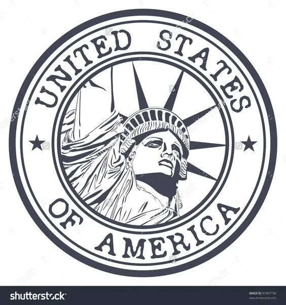 Kesan tampilan gambar logo stempel dengan warna hitam putih, tulisan “United States of America”, dan latar belakang bendera negara tersebut adalah kesan yang kuat dan mengesankan identitas nasional Amerika Serikat. Warna hitam putih memberikan kesan yang klasik, serius, dan elegan. Tulisan “United States of America” ditampilkan dengan font yang jelas dan tegas, mencerminkan kekuatan dan stabilitas negara. Latar belakang bendera Amerika Serikat menambahkan elemen patriotisme dan menggambarkan identitas negara tersebut secara langsung. Dengan bintang dan garis-garis yang ikonik, bendera menjadi representasi yang kuat dari Amerika Serikat.